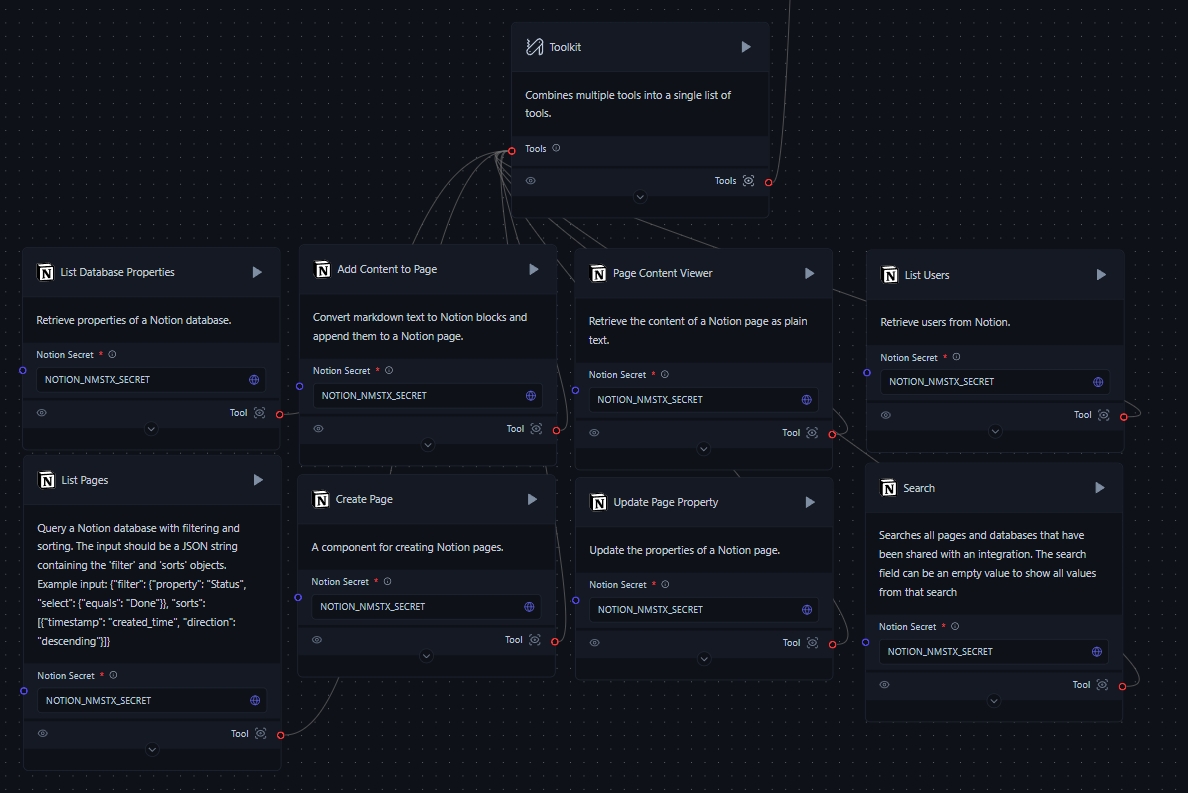 Toolkit: Combines multiple Notion-specific tools into a single toolkit