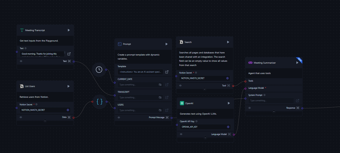 This component allows users to input the meeting transcript directly into the flow.